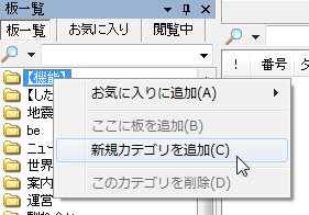 「板一覧」の適当なカテゴリの上で「右クリック」し「新規カテゴリを追加」をクリックします